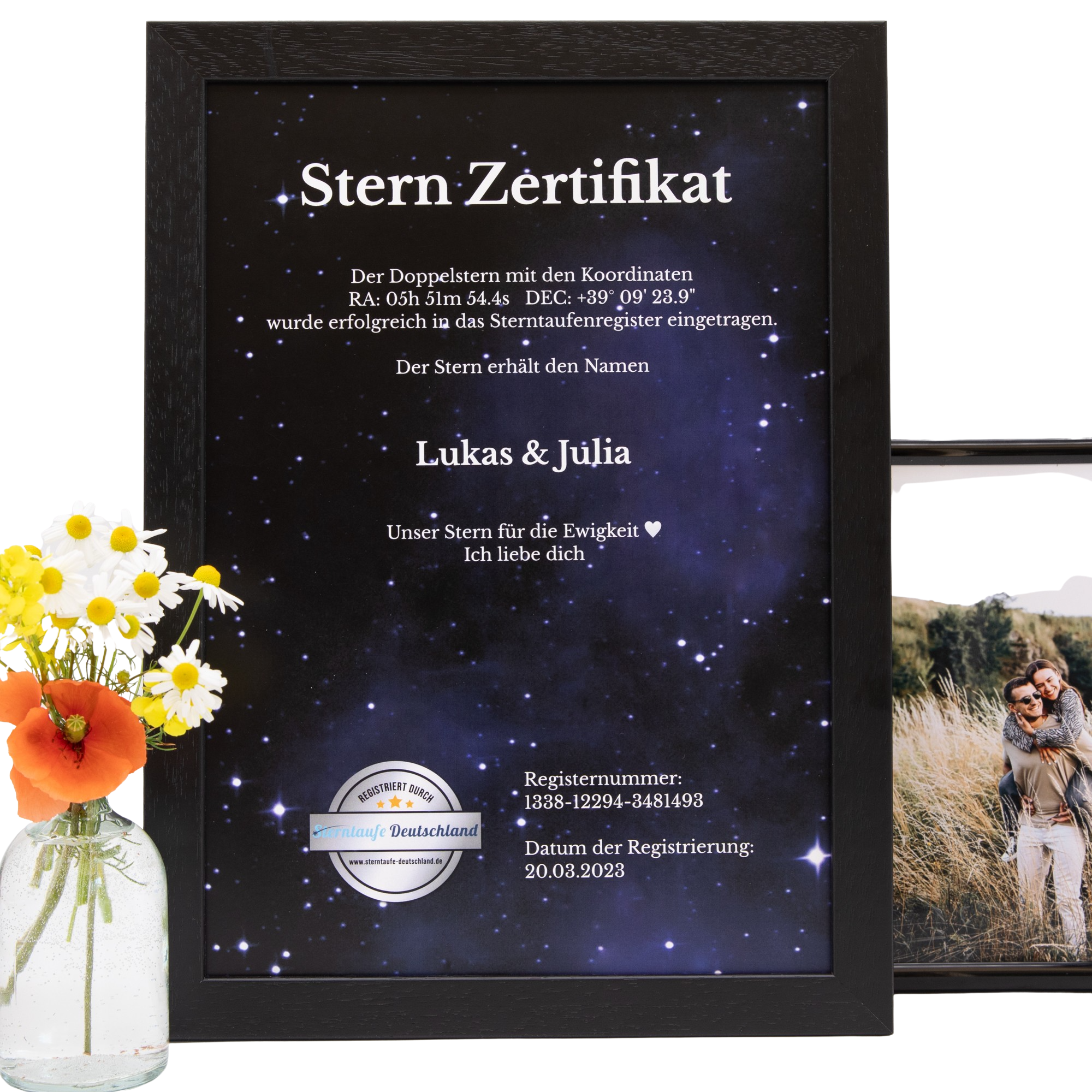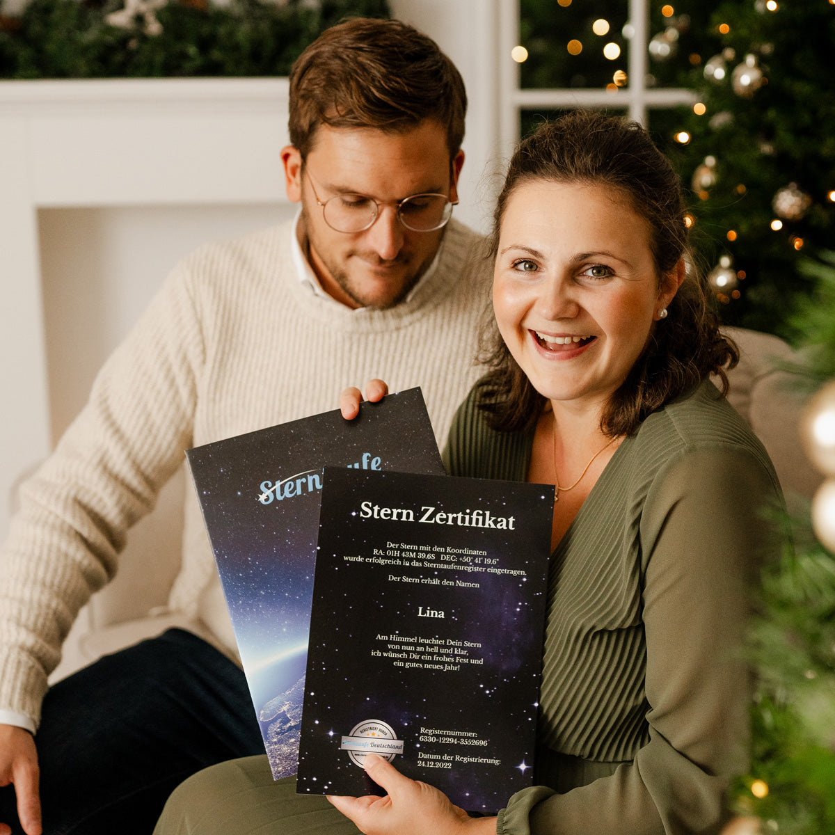 Du möchtest nicht erst einen Gutschein verschenken? Dann benenne jetzt direkt einen Stern – mit persönlicher Widmung und offiziellem Zertifikat.